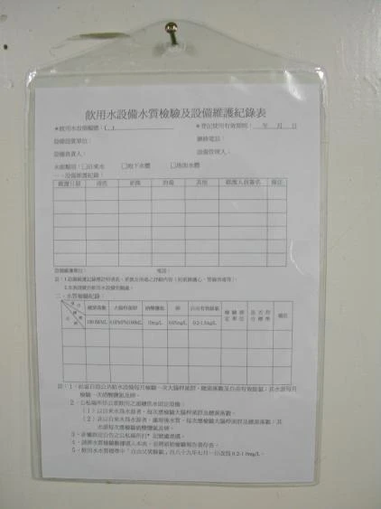 淨水器的水質檢驗袋---放檢驗資料,方便查驗。每天指定人員檢測清潔衛生。方便衛生機關查驗水質資料。淨水器的水質檢驗袋---放檢驗資料,方便查驗。每天指定人員檢測清潔衛生。方便衛生機關查驗水質資料。